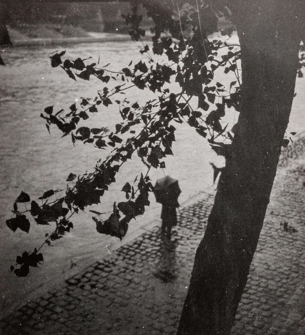 Dora Maar, a prominent photographer of the 1930s, is known for her innovative and surrealist approach to photography. In "Promeneur sur les Quais de Seine" Maar captures a solitary figure walking along the Seine, framed by the delicate branches of a tree. Her work often explored themes of isolation and introspection, using unique perspectives and compositions.