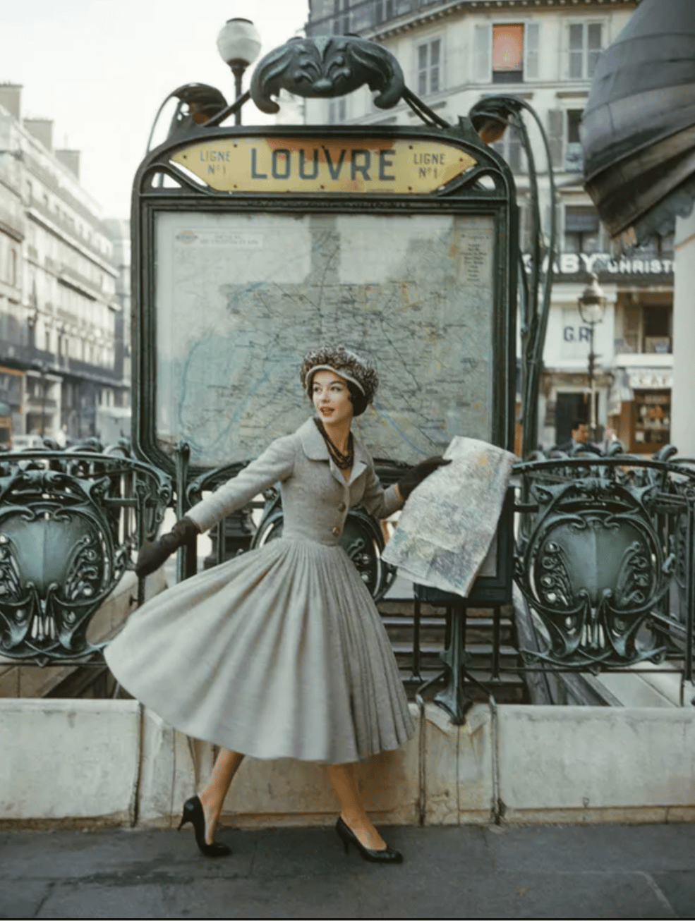 Mark Shaw, Grey Dior Outside Louvre Metro, 1957
