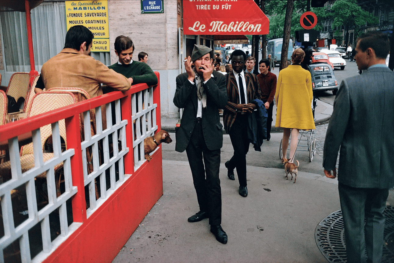 Joel Meyerowitz's 1967 photograph outside Le Mabillon captures a perfect slice of Saint-Germain-des-Prés street life.