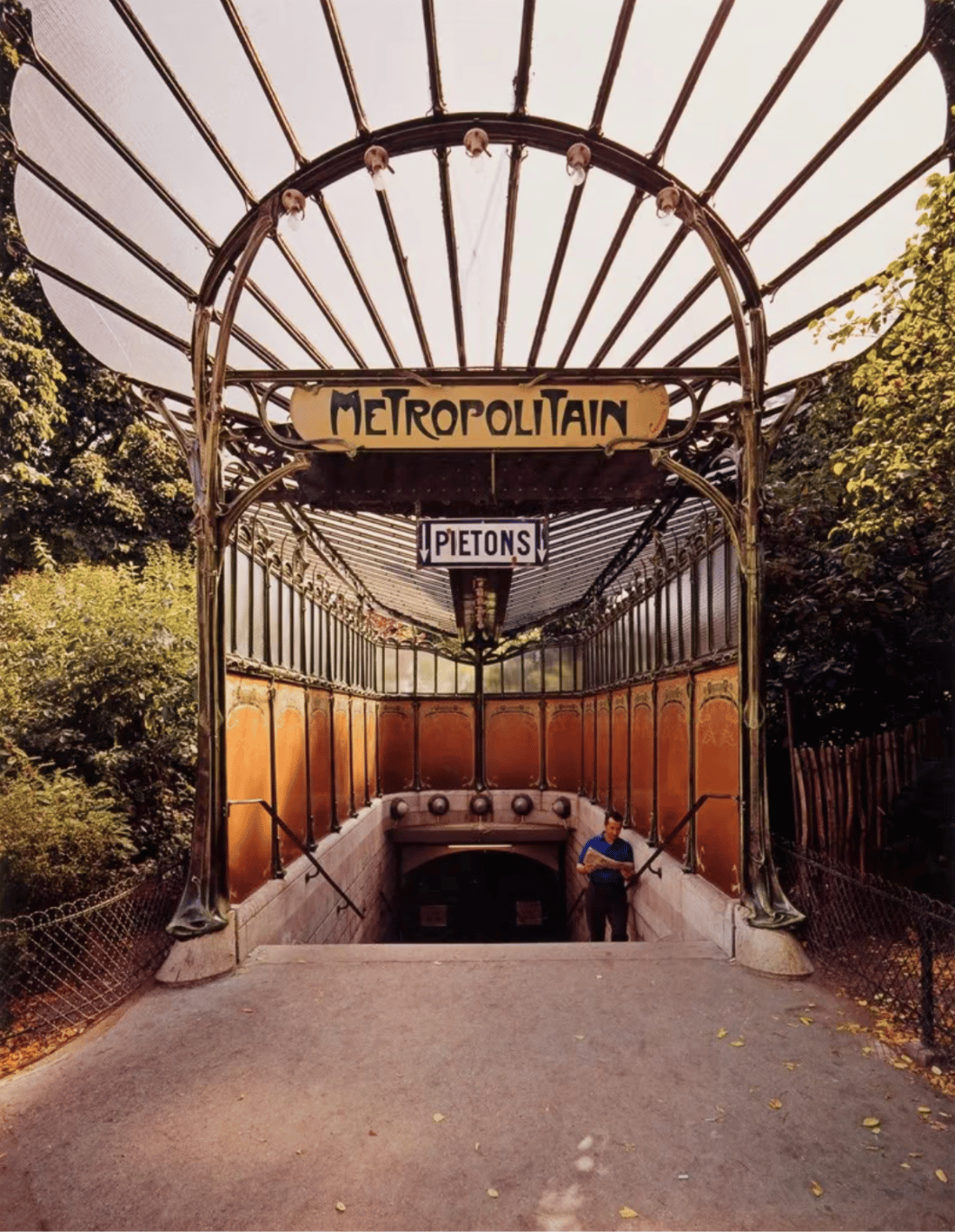 Evelyn Hofer, celebrated for her evocative portraits and landscapes, masterfully captures the essence of Paris in her photography. This image, a classic, of an Art Nouveau metro entrance designed by the innovative Hector Guimard, highlights the intricate beauty of his work. Hofer's keen eye for detail and color brings out the elegance of this iconic Parisian symbol, showcasing her meticulous artistry and painterly style.